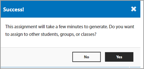 A success window will appear and ask if you want to assign to any other groups or classes.