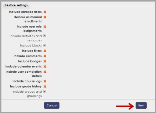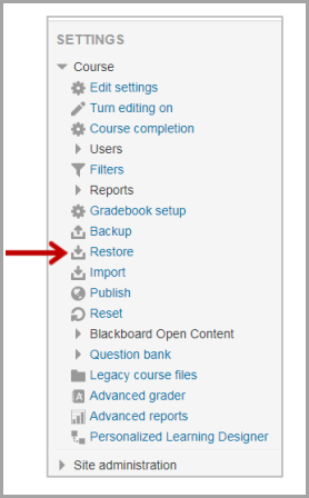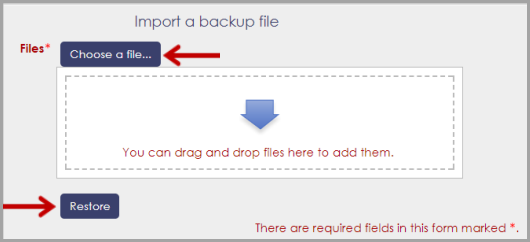 4. Select Choose File to upload the common cartridge (.imscc) file that was sent. And then select Restore.
