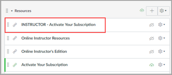 - Instructor Activation - Instructors must click on the “INSTRUCTOR – Activate Your Subscription” link to gain access to the content. When the cartridge is imported, this link will import hidden from the students. This link is programmed to allow a specific number of activations (matching the number of instructors listed in the contract). Please advise each instructor to only click this link once. Note: Instructors should not click on the student activation link, as it will count against the total number of student activations.