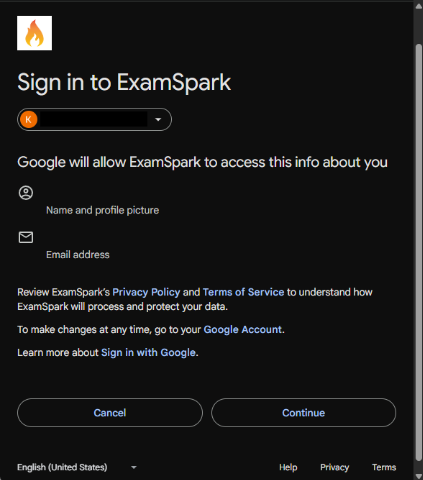 - A window will appear to confirm your name and email, select continue if this looks correct.