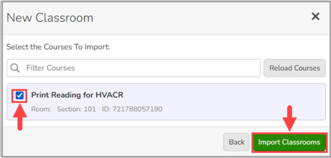 - You will now see a list of classrooms you have created in Google Classroom. Select the class you wish to link with G-W Assessment and select “Import Classroom”.