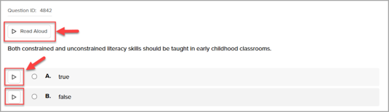 - Enable Read Aloud: Students will have the option to have questions and answer choices read to them using text-to-speech by selecting the “Click to Read” (