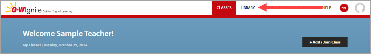 - After logging into your account, navigate to the top of the page and select the Library tab.