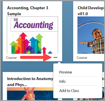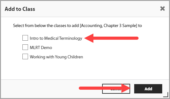 - Selecting Add to Class will give you a list of your current classes and the option to add the selected content directly to it.