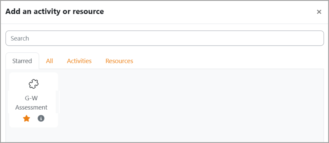 - Use the All tab to locate the G-W Assessment external tool or if you starred it, click it from the Starred tab.