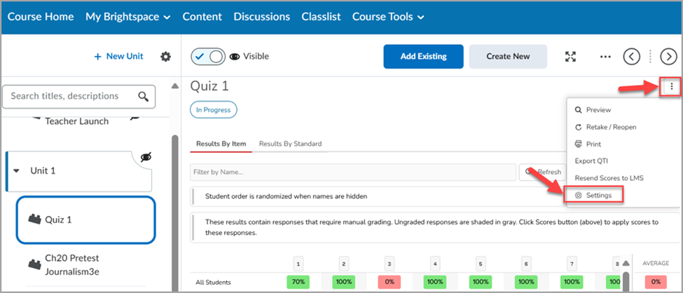 - Access your assignment settings by selecting the More Options button and selecting Settings.
