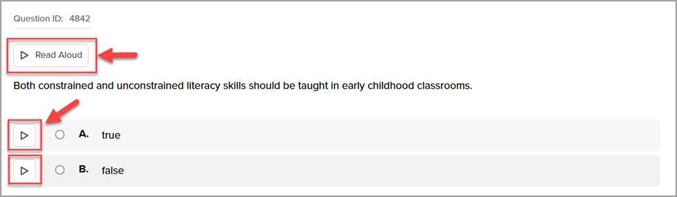 Enable Read Aloud: Students will have the option to have questions and answer choices read to them using text-to-speech by selecting the Click to Read (