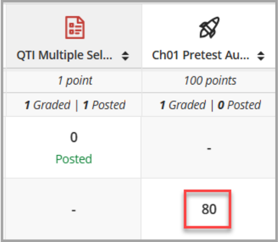 - The grade will revert to the original score recorded in the G-W Assessment assignment when selecting outside the gradebook cell.