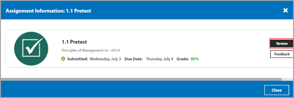 - Click the assignment name link then select Review to review your work.