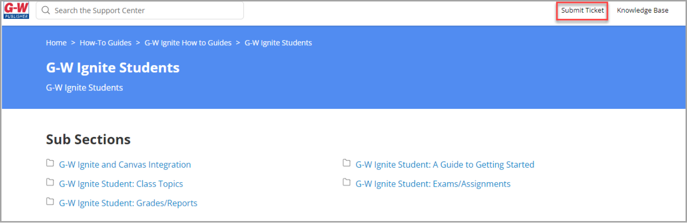 Should you require assistance at any point, navigate to the Help tab. Here, you’ll find a wealth of knowledge-based articles that cover frequently asked questions. For additional support, the “Submit Ticket” link allows you to contact the G-W support team directly.