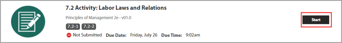 If an activity is assigned with a start date, you’ll see a Start button.