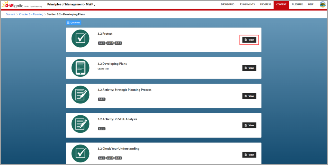 - Once expanded, the content is organized by chapters, units, or modules, mirroring your online textbook and the Content page.