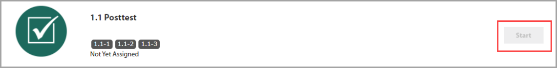 Some activities, like a posttests, can’t be accessed until they are assigned. You will see a grayed-out Start button.